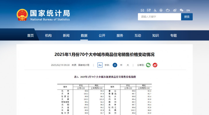 附:《国家统计局城市司首席统计师王中华解读2025年1月份商品住宅销售价格变动情况统计数据》