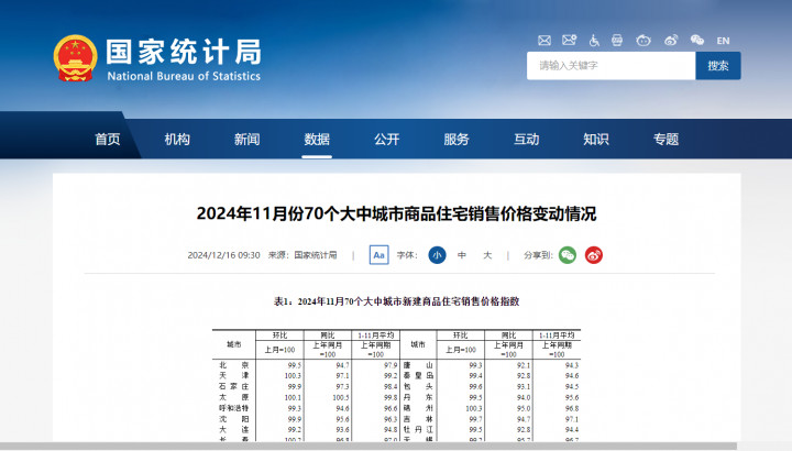 附:《国家统计局城市司首席统计师王中华解读2024年11月份商品住宅销售价格变动情况统计数据》