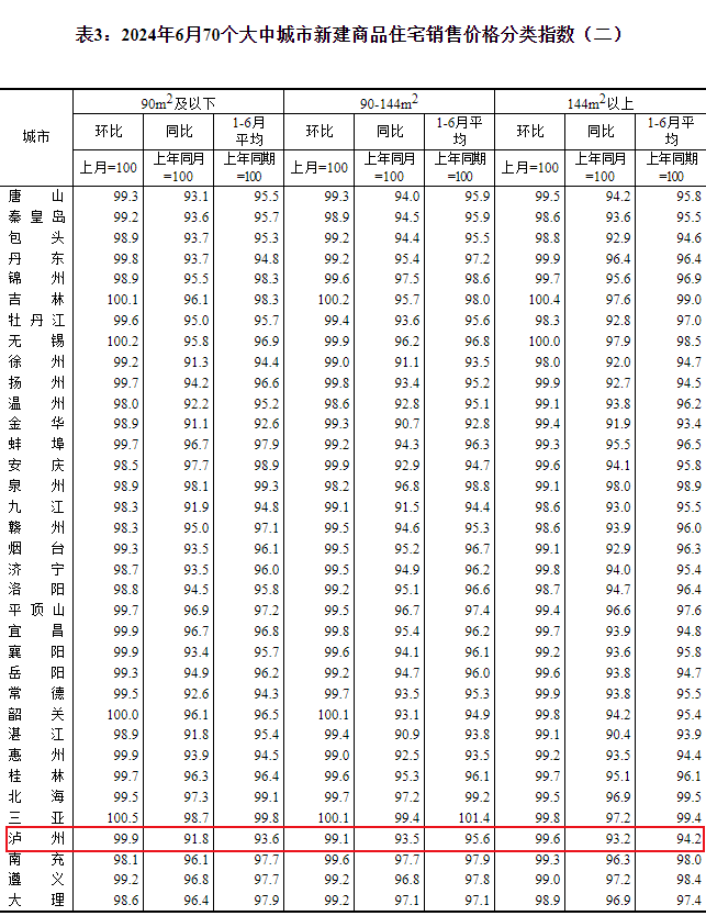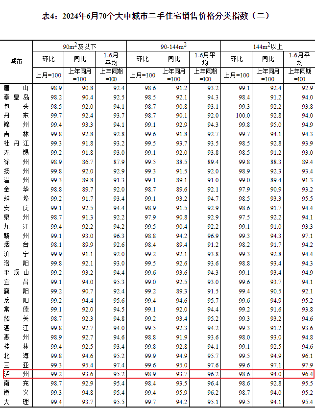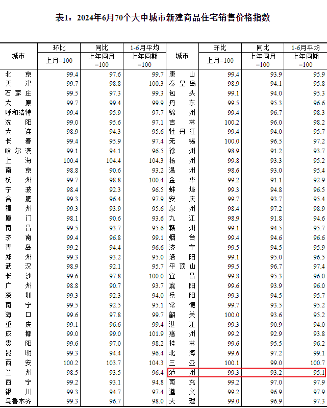 2024年7月15日,国家统计局发布了2024年6月份70个大中城市商品住宅销售价格变动情况。来看看泸州房价有什么变化吧!